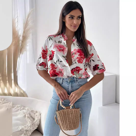Damen Bluse mit floralen Motiven und Knopfleiste Stalluxe