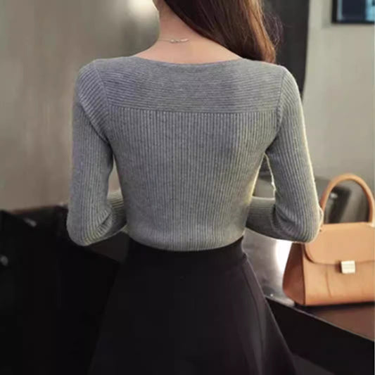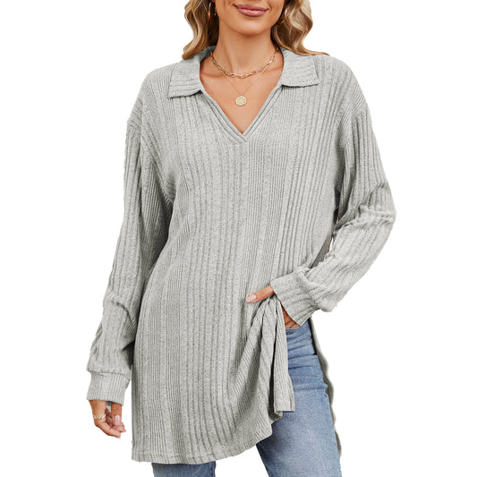 Damen Langarmshirt mit elegantem V-Ausschnitt und feiner Textur Stalluxe
