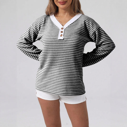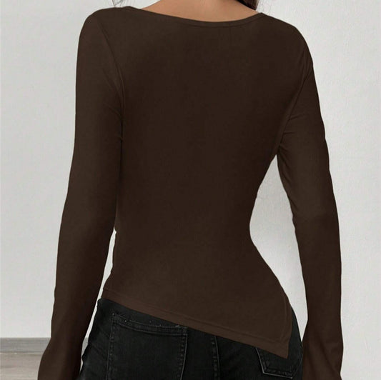 Damen Langarmshirt mit strukturiertem Halsausschnitt und Knopfdetails Stalluxe
