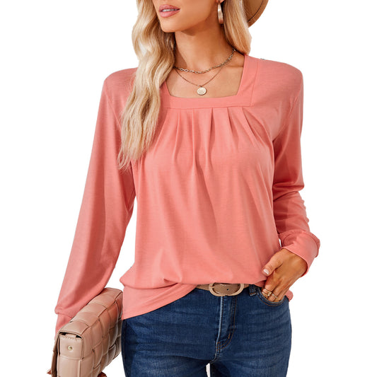Damen Langarmshirt mit quadratischem Ausschnitt und femininer Raffung Stalluxe