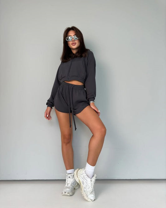 Damen lässige Kapuzensweatshirt und Shorts Set Stalluxe