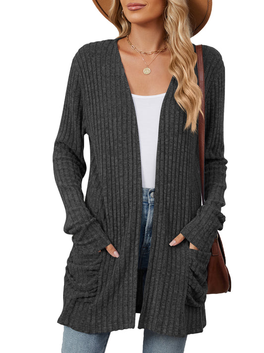 Damen lässige Strickjacke mit Rippstruktur und praktischen Taschen Stalluxe