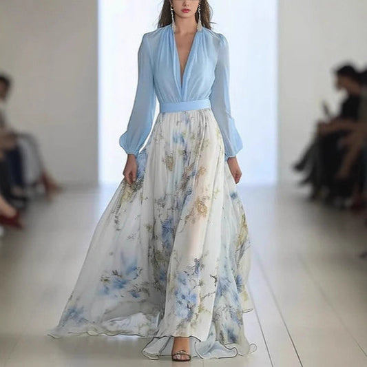 Damen Maxikleid mit floralem Druck und voluminösem Rock Stalluxe