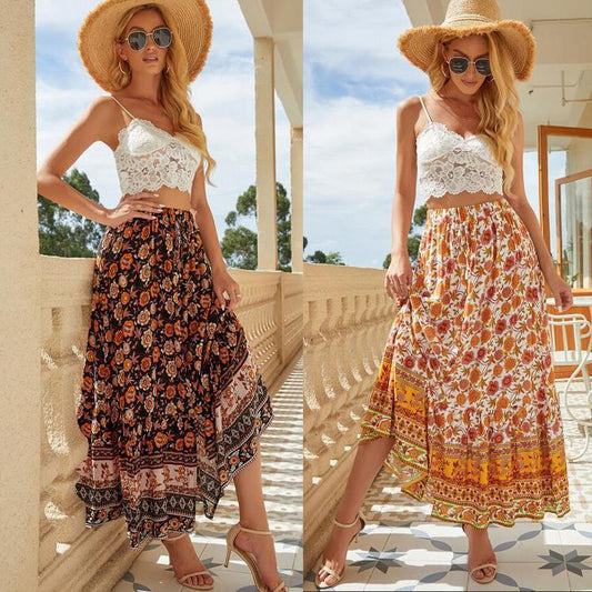 Damen Maxirock mit floralem Design und hoher Taille Stalluxe