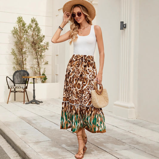 Damen Maxirock mit elastischem Taillenbund und auffälligem Leo-Muster Stalluxe