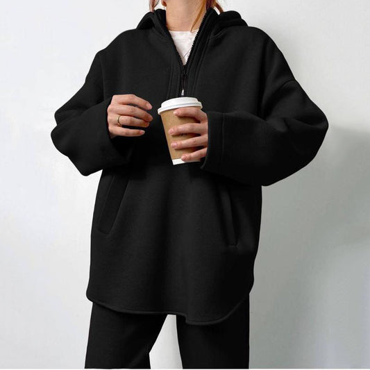 Damen oversized Fleece-Hoodie mit seitlichem Reißverschluss und weiten Hosen Stalluxe