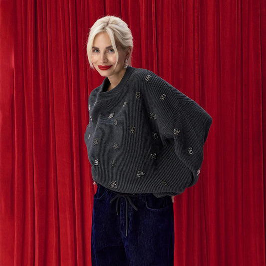 Damen Oversized Strickpullover mit grafischem Schriftzug Stalluxe