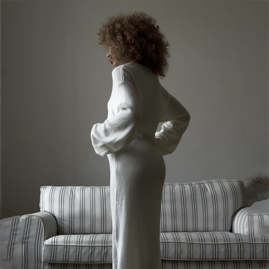Damen Oversized Strickkleid mit hohem Kragen und seitlichem Schlitz Stalluxe