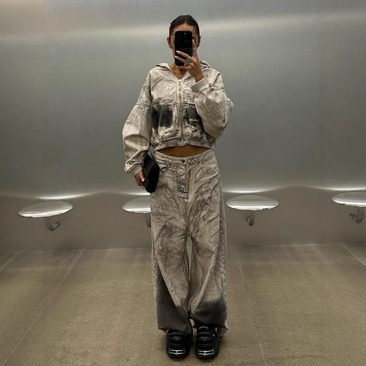 Damen Oversized Wide-Leg-Jeans mit modernem Farbverlauf Stalluxe