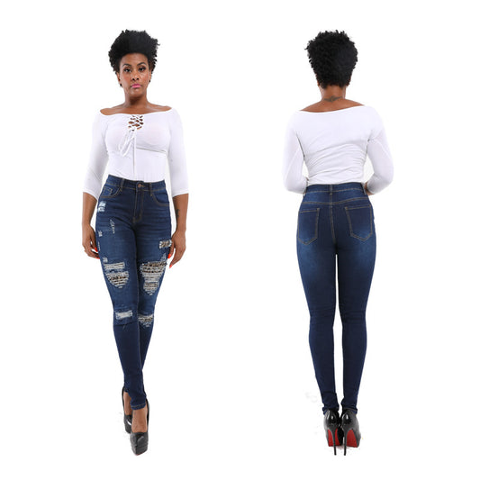 Damen Skinny Jeans mit hoher Taille und Destroyed-Details Stalluxe