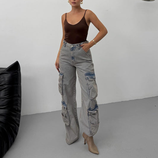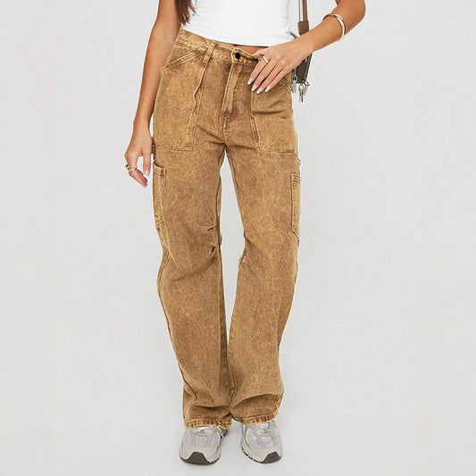 Damen Cargo-Jeans mit hoher Taille und praktischen Taschen Stalluxe
