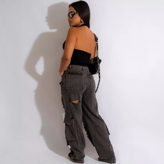 Damen Cargo-Jeans mit ausgefransten Rissdetails und praktischen Taschen Stalluxe