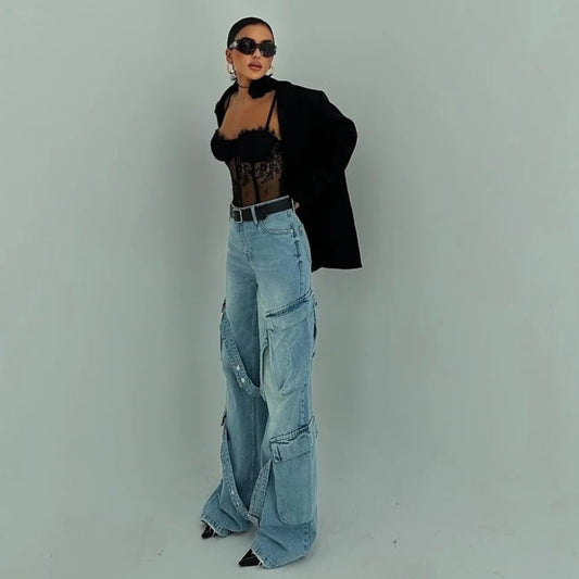 Damen Cargo-Jeans mit einzigartigen Applikationen und auffälligem Design Stalluxe