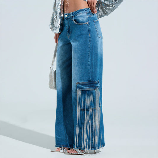Damen Cargo-Jeans mit Glitzerfransen und tiefen Seitentaschen Stalluxe