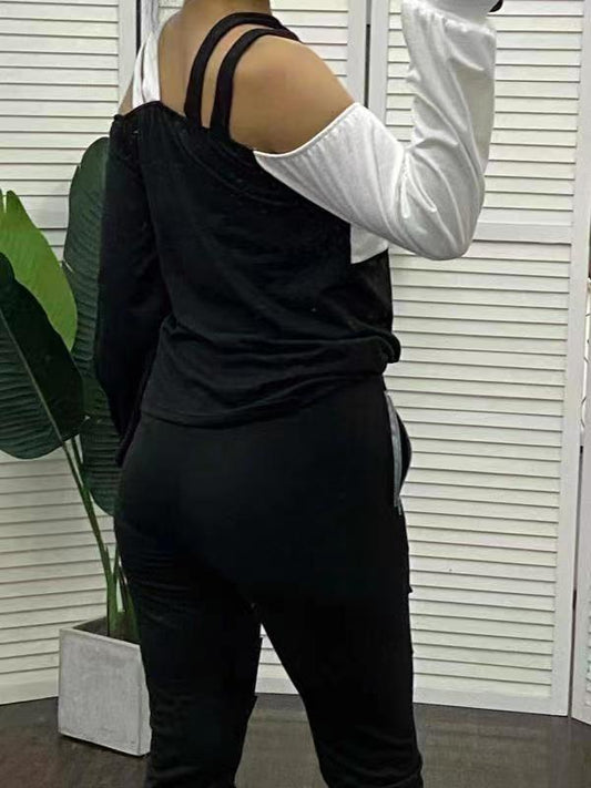 Damen asymmetrisches Oberteil mit freiem Schulterdesign und verbindenden Trägern Stalluxe