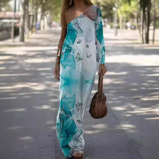 Damen asymmetrisches Maxikleid mit buntem Kunstdruck Stalluxe