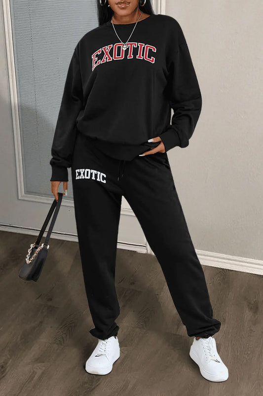 Damen Sportliches Sweatshirt- und Jogginghose-Set mit urbanem Grafikdruck Stalluxe