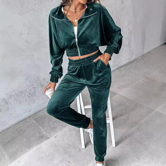 Damen Sportliches Set aus hochwertigem Samt mit cropped Jacke und bequemen Pants Stalluxe