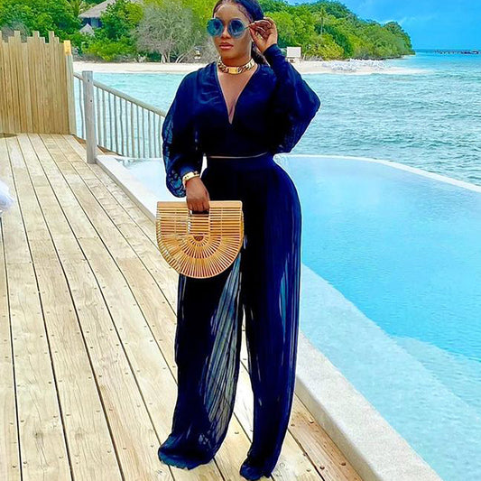 Damen Stilvolles Zweiteiliges Set mit weitem Schnitt und tiefem V-Ausschnitt Stalluxe