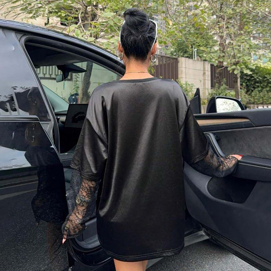 Damen Streetstyle Oversized T-Shirt mit Lace-Ärmeln Stalluxe