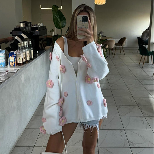 Damen Strickjacke mit floralem 3D-Design und V-Ausschnitt Stalluxe