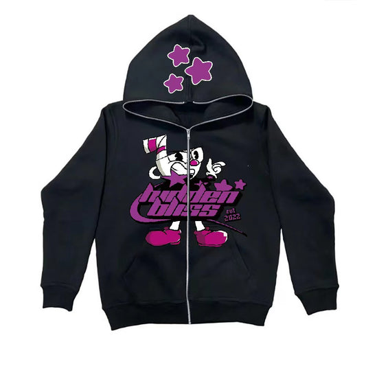 Damen Cooles Kapuzenjacke mit buntem Grafikdruck und praktischem Reißverschluss Stalluxe