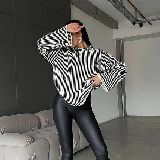 Damen Strickpullover mit modernen Kontraststreifen und lässigem Schnitt Stalluxe