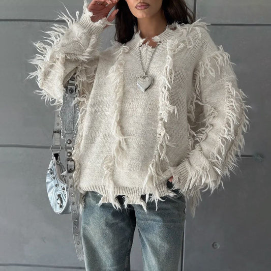 Damen Strickpullover mit lässigem Fransen-Design Stalluxe