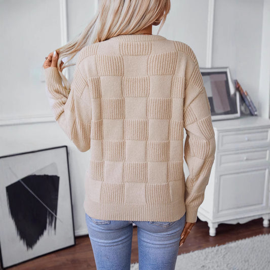 Damen Strickpullover mit modischem Karomuster und lässigem Schnitt Stalluxe