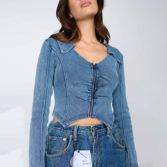 Damen tailliertes Jeansjacke mit Reißverschluss Stalluxe