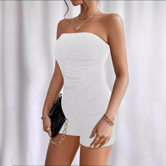 Damen trägerloses Plisseekleid mit raffiniertem Kordelzug Stalluxe