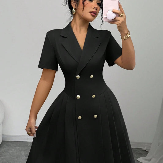 Damen Tailliertes Blusenkleid mit doppelter Knopfreihe und plissierten Details Stalluxe