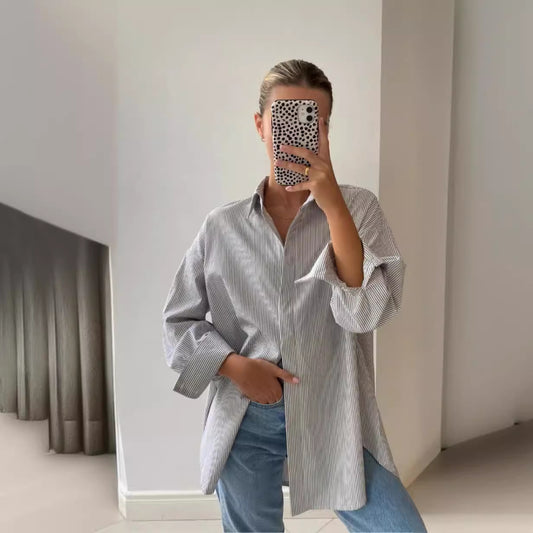 Damen Übergroße Hemdbluse mit gestreiften Mustern und elastischen Ärmeln Stalluxe