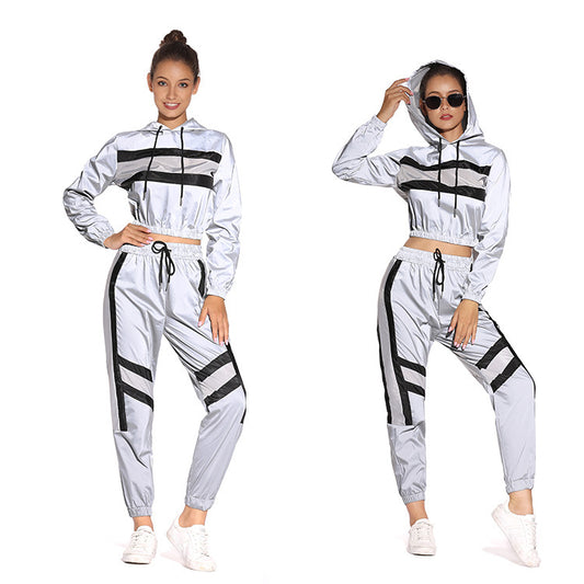 Damen cropped Kapuzenpullover und entspannte Jogginghose Set Stalluxe