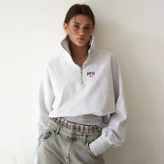 Damen Cropped Sweatshirt mit hohem Kragen und Reißverschluss Stalluxe