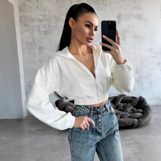 Damen cropped Kapuzenpullover mit voluminösen Ärmeln Stalluxe