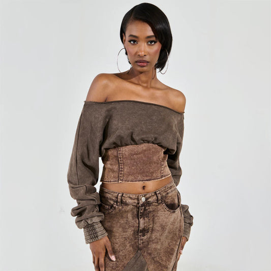 Damen Cropped Sweatshirt mit lässigem Off-Shoulder Design und modischem Bund Stalluxe