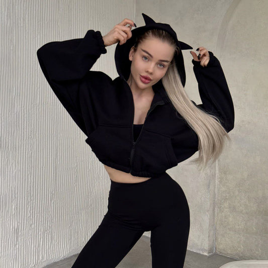 Damen cropped Kapuzenjacke mit einzigartigem Ohren-Design Stalluxe