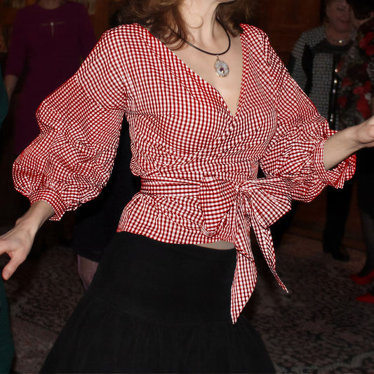 Damen Wickelbluse mit voluminösen Ärmeln und Taillengürtel Stalluxe