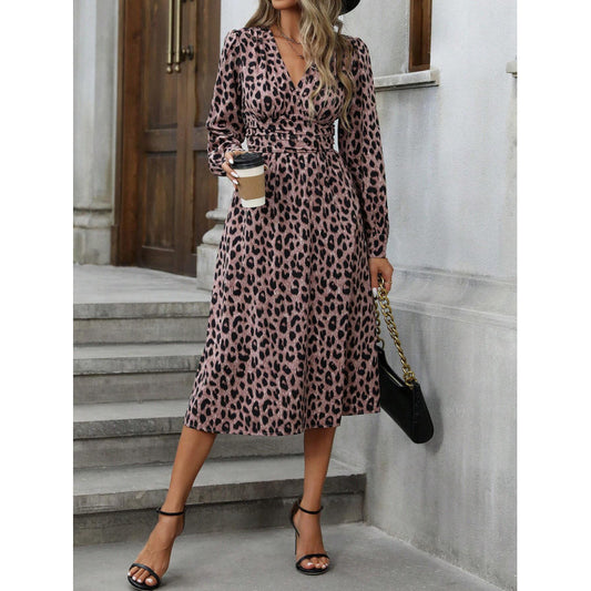 Damen Wickelkleid mit modernem Leopard-Print und langen Ärmeln Stalluxe