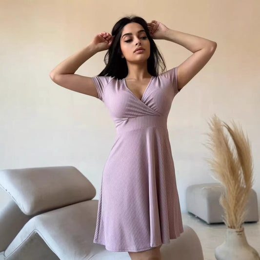 Damen Wickelkleid mit Rippstruktur und schwingendem Rock Stalluxe