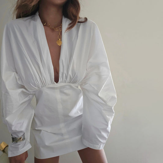 Damen Wickelkleid mit innovativem V-Ausschnitt und voluminösen Ärmeln Stalluxe