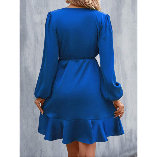 Damen Wickelkleid mit voluminösen Ärmeln und fließendem Schnitt Stalluxe