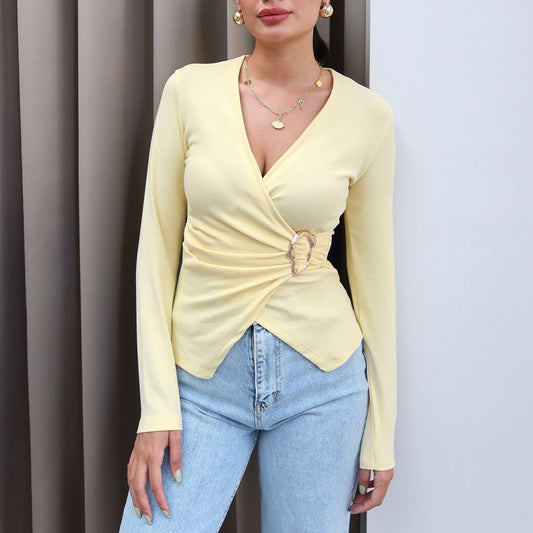 Damen Wickeloberteil mit dekorativem Ringdetail und tailliertem Schnitt Stalluxe