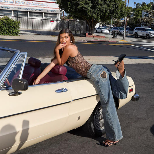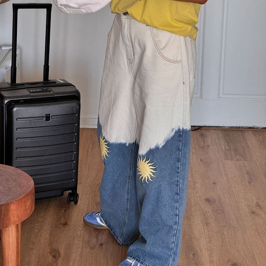 Damen Wide-Leg Jeans mit einzigartigem Sonnen-Motiv Stalluxe