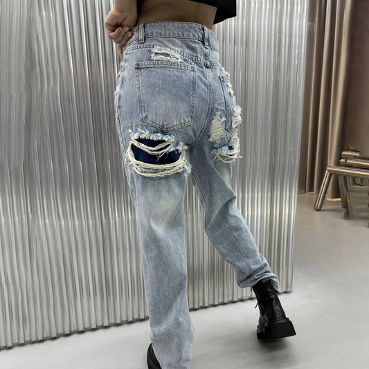 Damen Wide-Leg-Jeans mit Destroyed-Details und hohem Bund Stalluxe