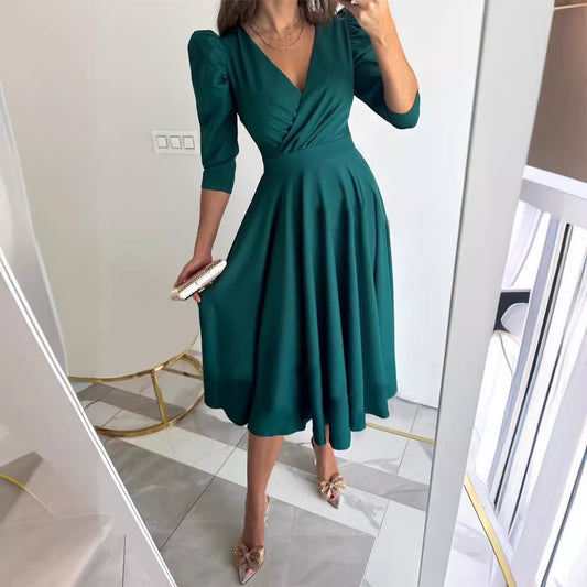 Damen Wickelkleid mit voluminösen Ärmeln und schwingendem Rock Stalluxe