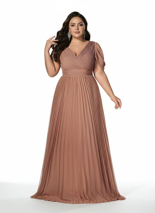 Stalluxe | Elegantes Plissiertes Brautjungfernkleid mit V-Ausschnitt und Flügelärmeln