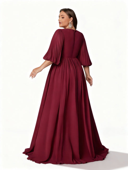 Stalluxe | Elegantes Pailletten-Abendkleid in Übergröße mit Bischofsärmeln