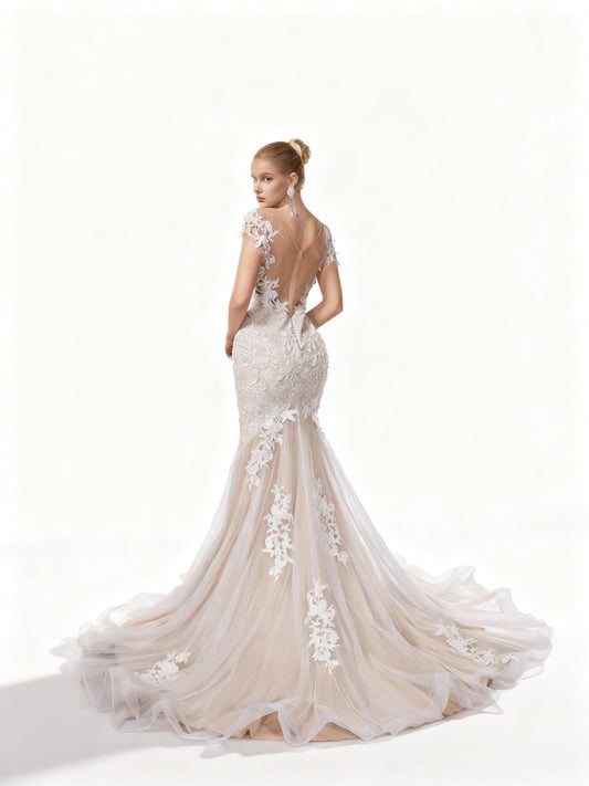 Stalluxe | Göttliches Spitzenapplikations Brautkleid ohne Ärmel